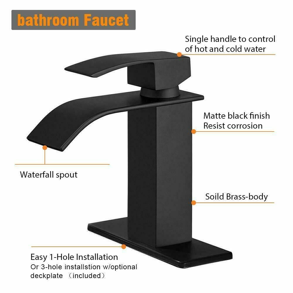 Waterfall Bathroom Sink Faucet Single Handle Hole Vanity Mixer Taps with Cover