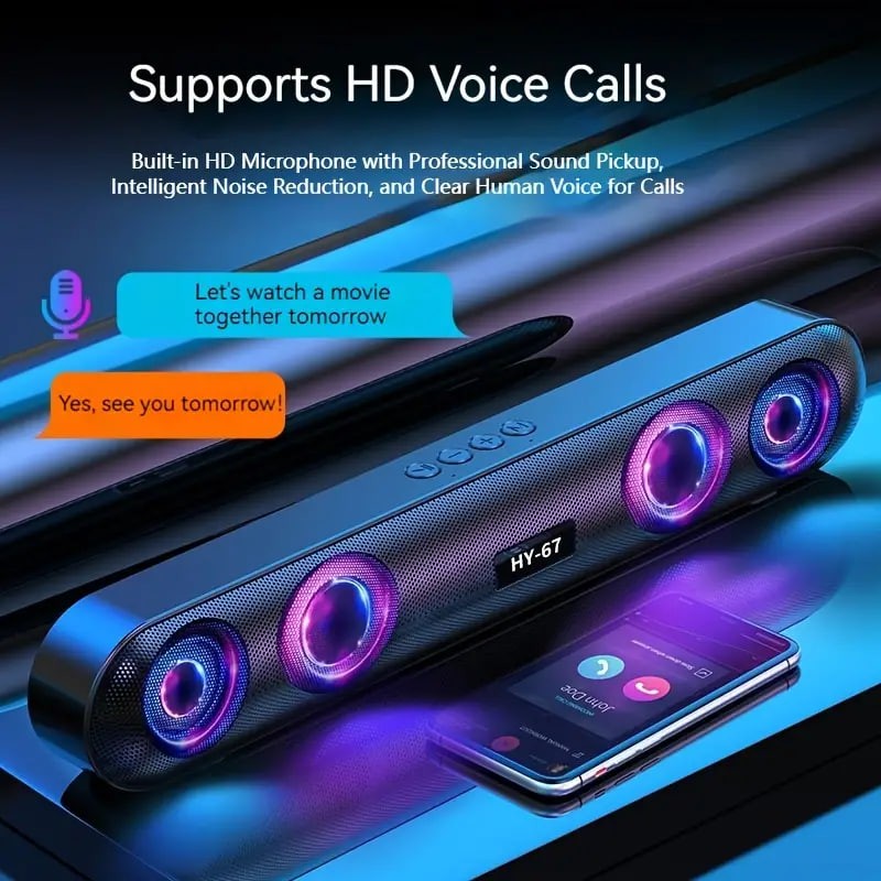 Wireless Speaker, 4 Sound Holes, 6D Surround Sound, Shocking Heavy Bass, RBG Color, Long Strip, Easy To Store And Save Space, Desktop Audio/computer Speaker/car Speaker/cycling Speaker/camping Speaker