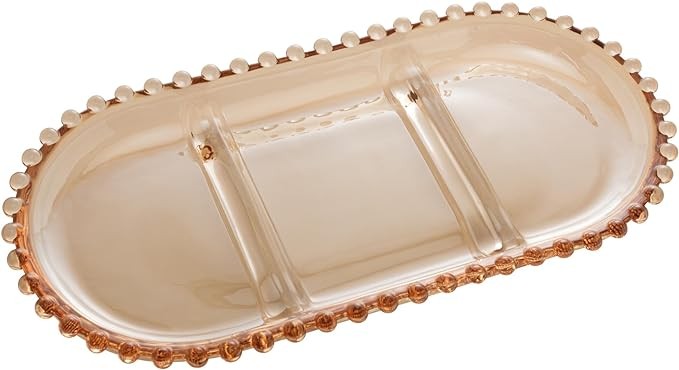 WOLFF - Oval Crystal Serving Plate - Pearl Beaded Details, Divided Platter Dish, Sectional Tray for Snacks, Appetizer, Nuts or Sweets - Hosting Luxury Glasswear, Decorative Dinner Accessories - Amber