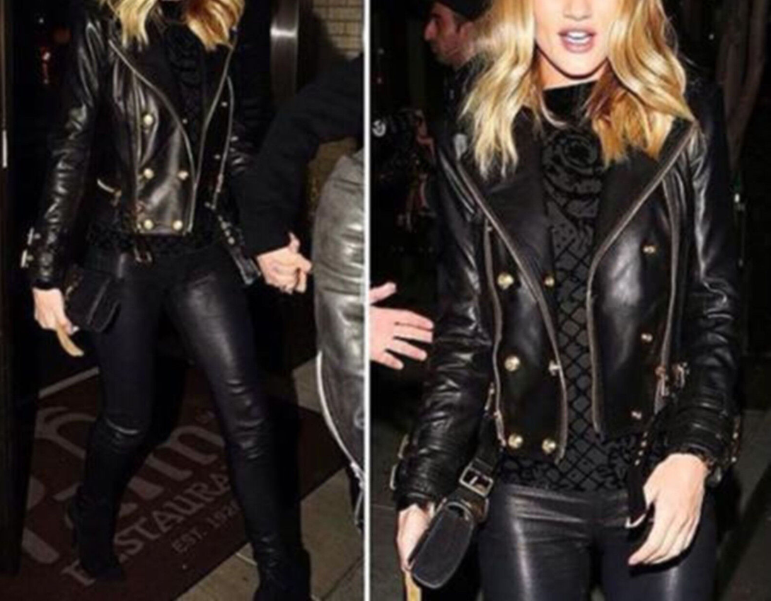 Women's Black Moto Style Genuine Leather Motorcycle Slim fit Biker Jacket