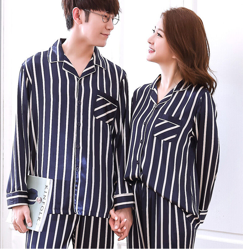 Womens Mens Silk Satin Pajamas Sets Sleepwear Long Sleeve Pyjamas Nightwear Soft