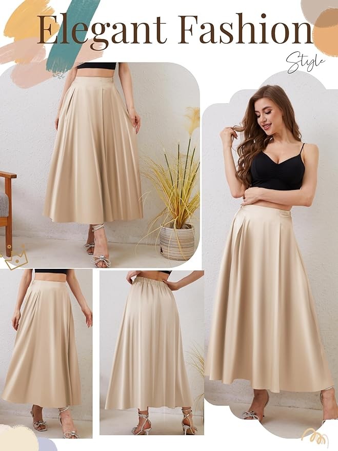 • 【Material】 Satin maxi skirt, the fabric is made of polyester and spandex, super soft and comfortable to the touch, skin-friendly, comfortable and light to wear, skirts for women suitable for all-day wear.