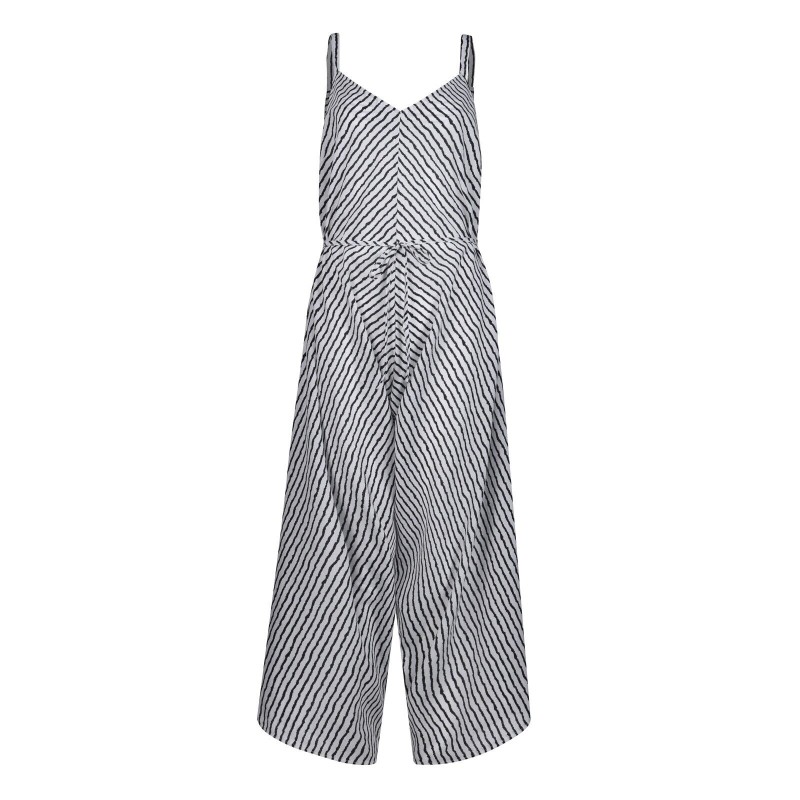 Women's Striped Printed Suspenders Loose One-piece Wide Leg Pants Jumpsuit