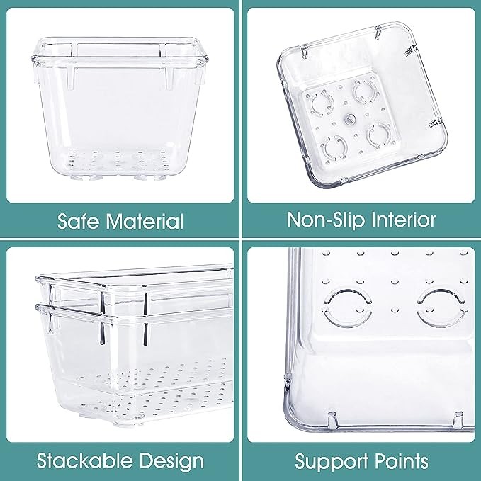• Stackable Design: These clear storage bins stack into one other to help maximize your space. Use them side by side to keep organized. The clear color allows you to save time and find what you need quickly and easily.