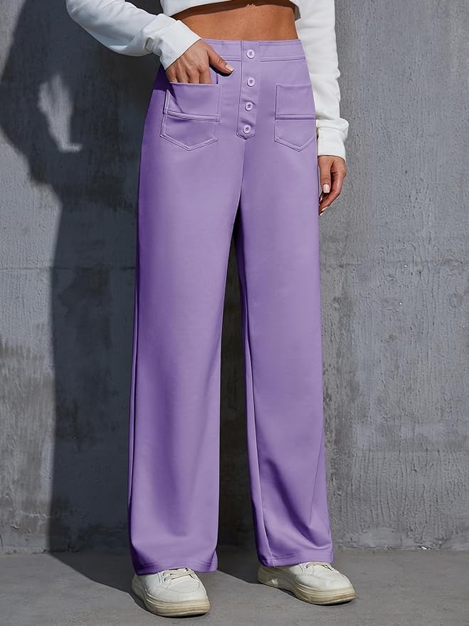 • [Trend Design]: The high-waisted design of these high waisted trousers provides a slimming effect, and the trousers are decorated with buttons to add a touch of sophistication and elegance to your work attire. And multiple pockets make it easy to store your essentials, keeping it on-trend.