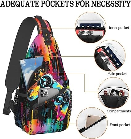 • High-Quality Material: Game Crossbody Bag for Men and Women This Sling Bag Is Made Of High-Quality Material, Which Is Wrinkle-Resistant. The Shoulder Straps And Back Are Made Of Breathable Material. Flexible Shoulder Strap Can Be Adjusted To The Perfect Length For Your Most Comfort, Relieve The Stress Of Your Shoulder And Free Your Hands For More Fun.