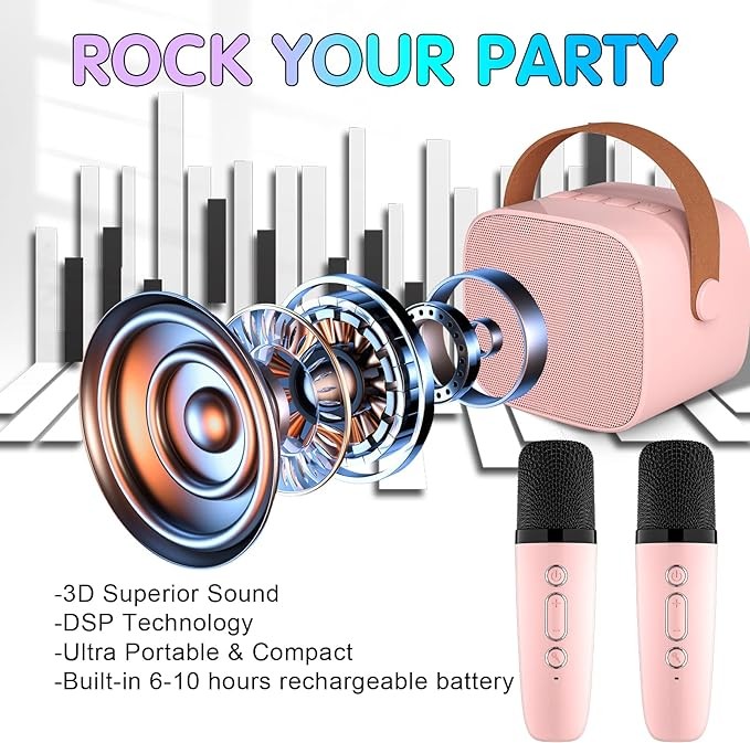 Gift It—Stylish design and beautiful package box make it cool toys for teen girls 8-10 years, perfect birthday Christmas gifts for 3, 4, 5, 6, 7, 8, 9, 10, 11, 12+ year old girls toddler teens adult.With this ultra-portable mini karaoke machine, everywhere is the stage. Cool Birthday or festival gift for your kids, friends or family.