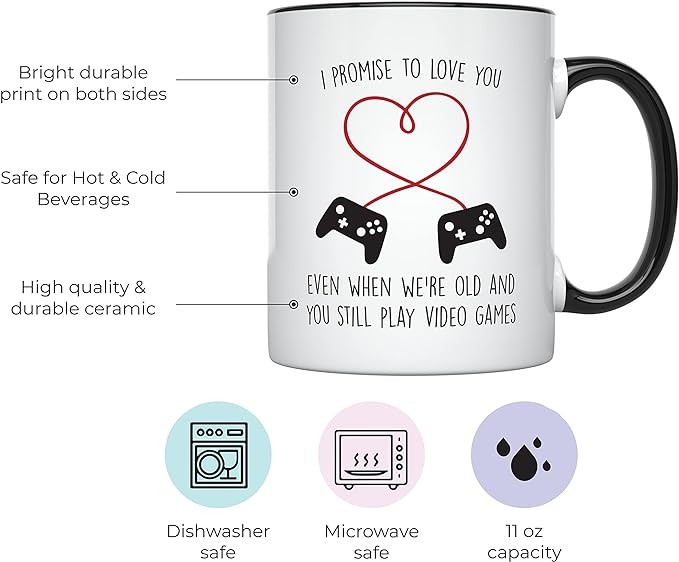 YouNique Designs Gaming Mugs for Him - Portable Coffee Mug 11 Oz, PC Gamer Gifts for Men, Gaming Stuff, Gamer Mug, Gaming Gifts for Men, Gamer Boyfriend Gifts for Gaming Boyfriend (Black Handle)