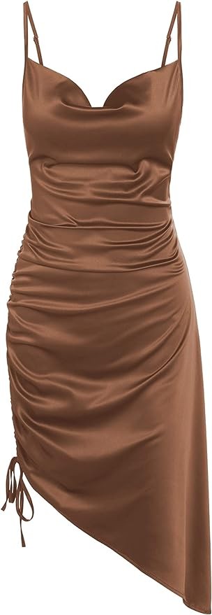 ZAFUL Slip Satin Dresses for Women Club Midi Dress Cowl Neck Silk Dress Cocktail Dress with Drawstring