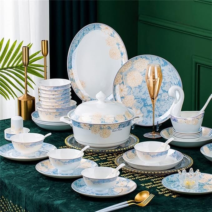 ZHcowe 60 Piece Bone China Tableware Sets Food Bowl Sushi Dishes Ramen Plates Dinner Set Utensils for Kitchen Accessories